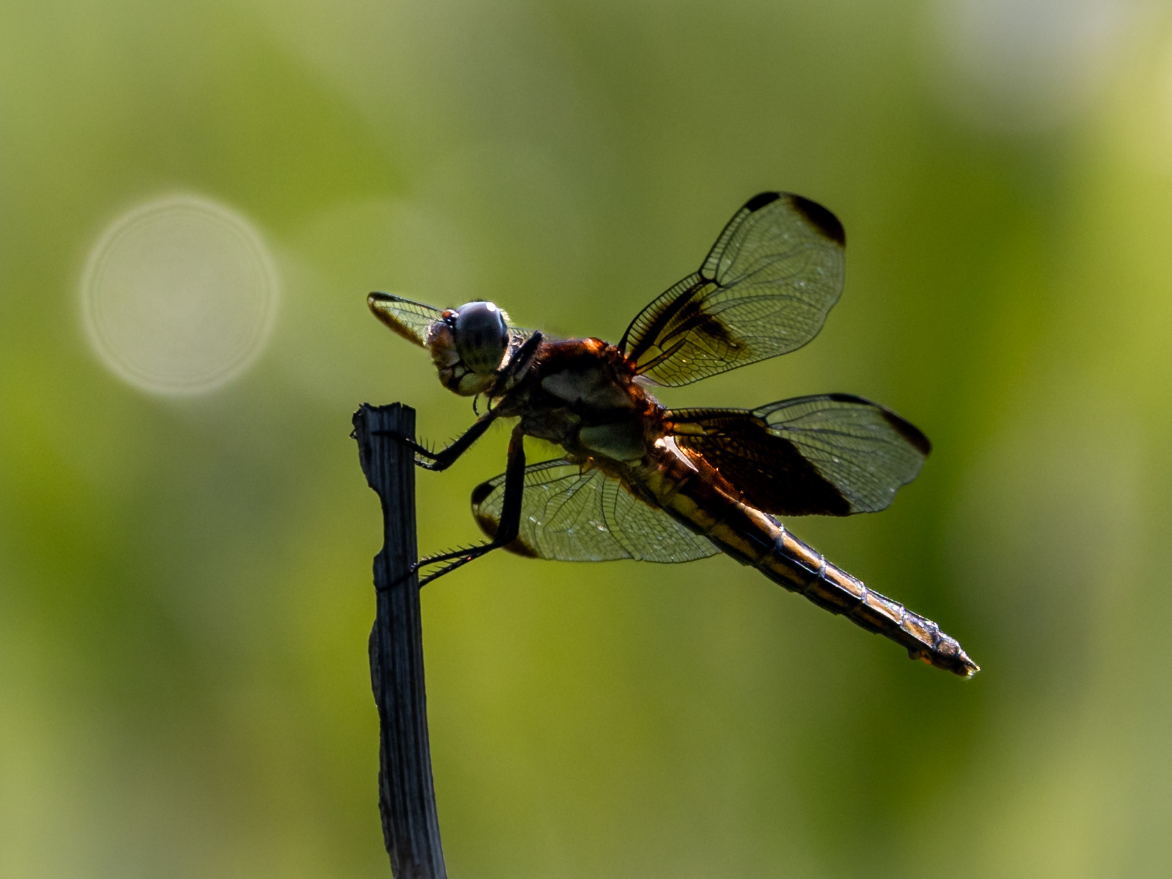 WIDOW SKIMMER DRAGONFLY RESTS ON A TWIG