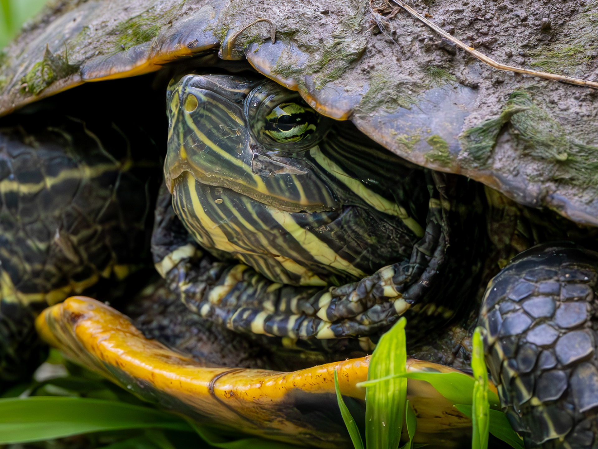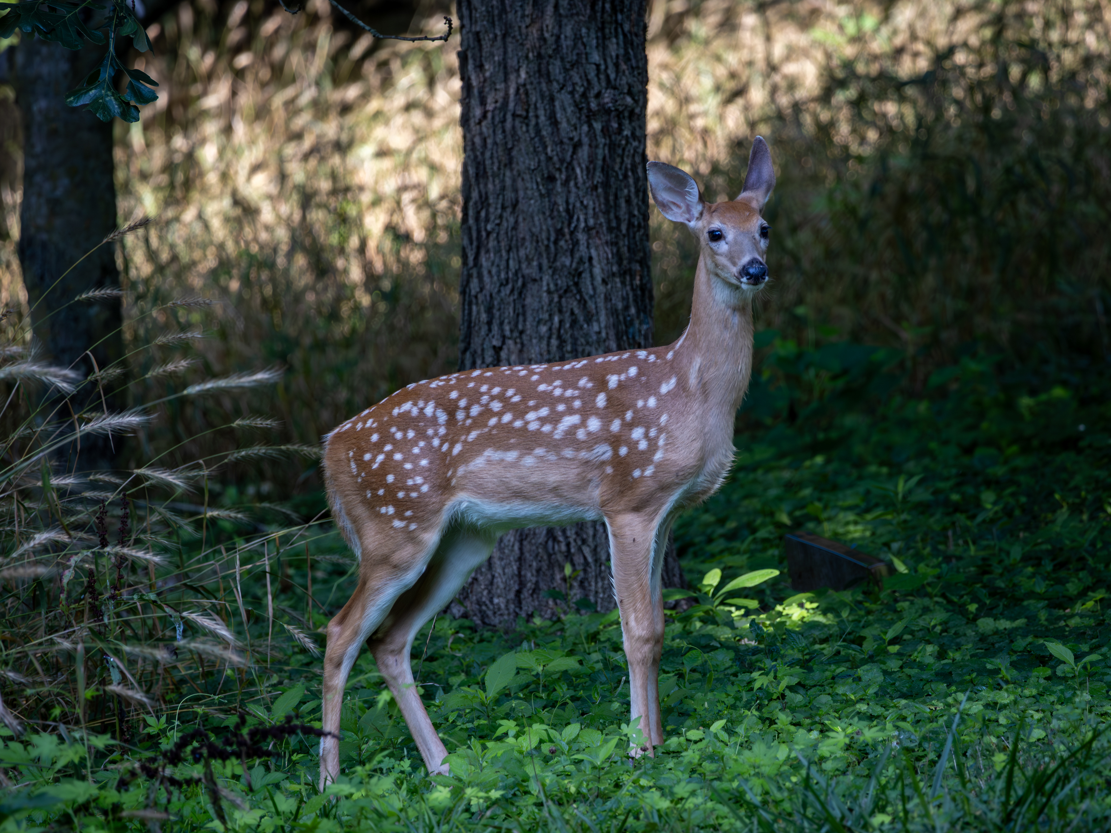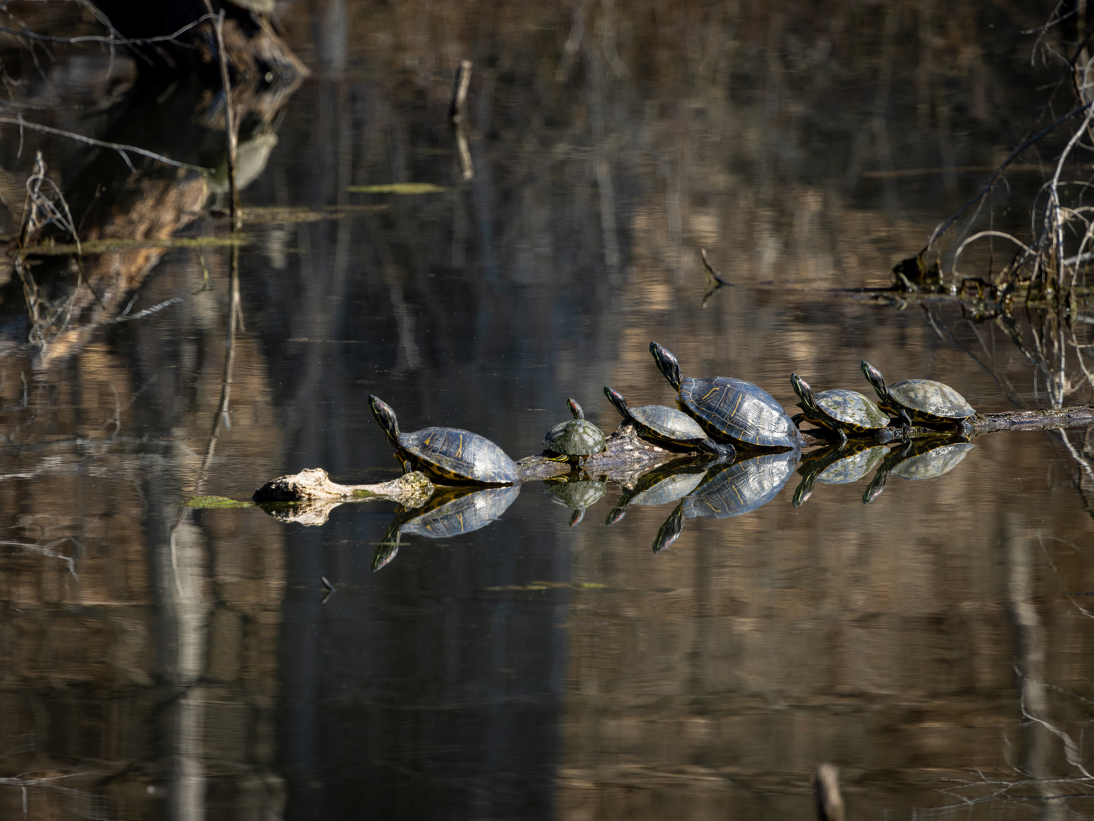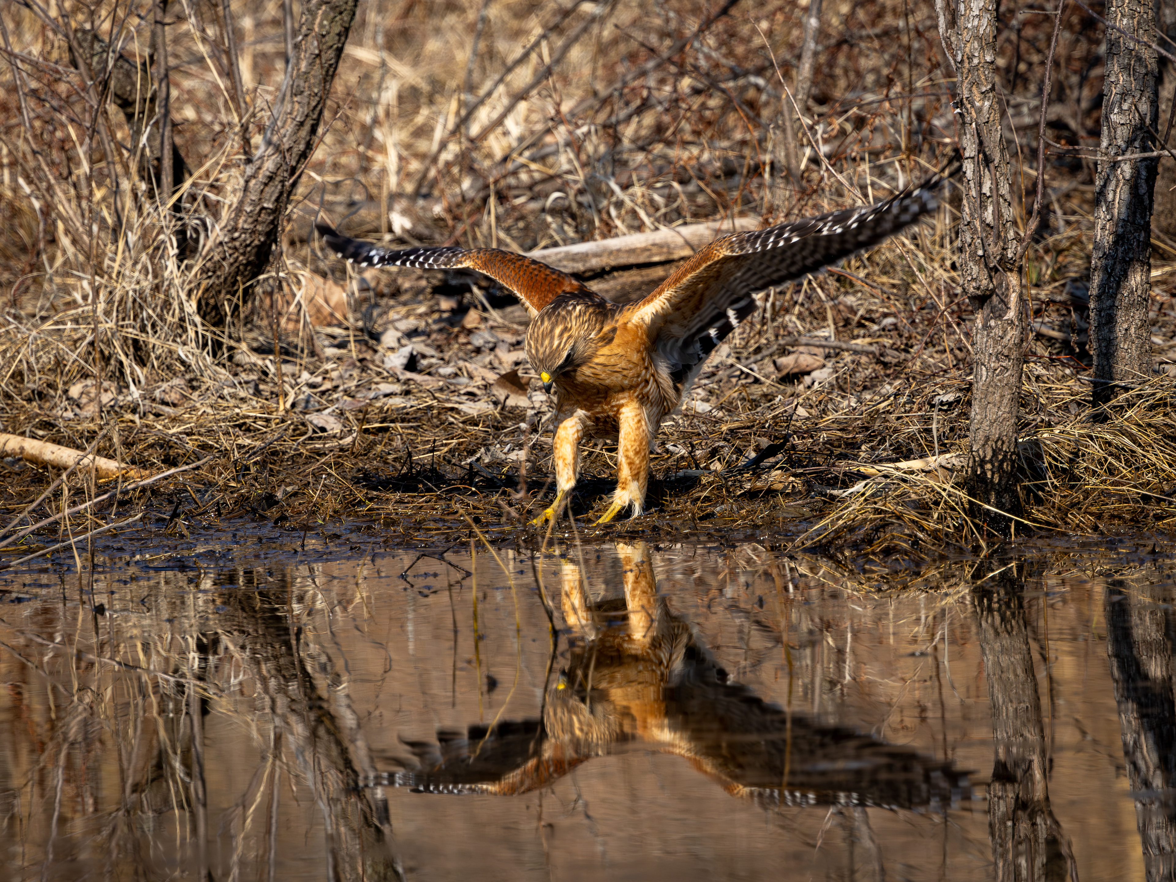 A coyote pup was sunning by the edge of a swamp. I didn't stay too long, as I could hear mama coyote rustling in the brush behind me.