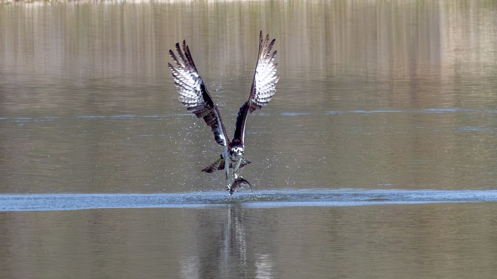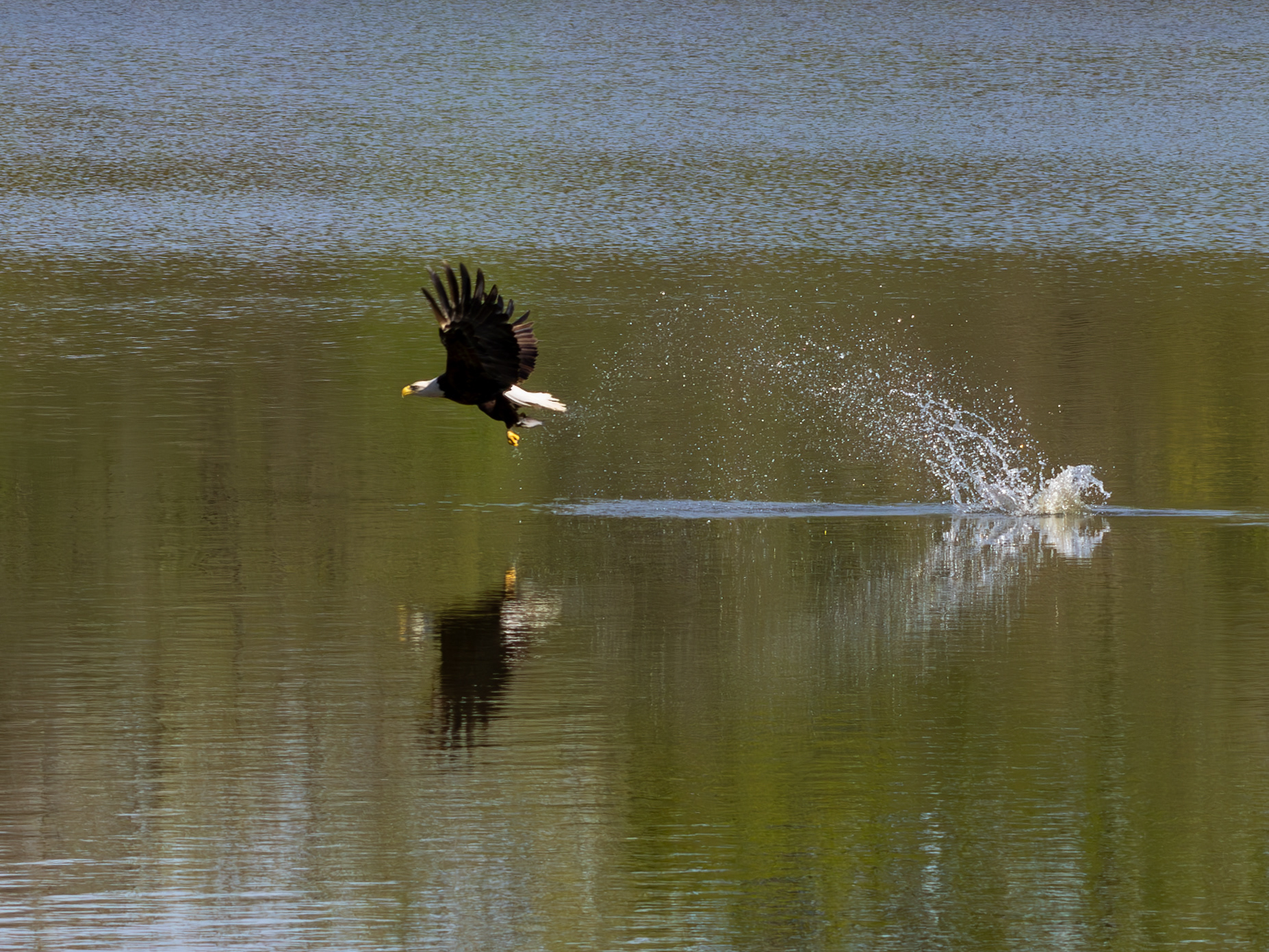 As I was intently watching this beautiful bald eagle swirl on the wind above the lake, it suddenly swooped down and snatched a fish for breakfast.