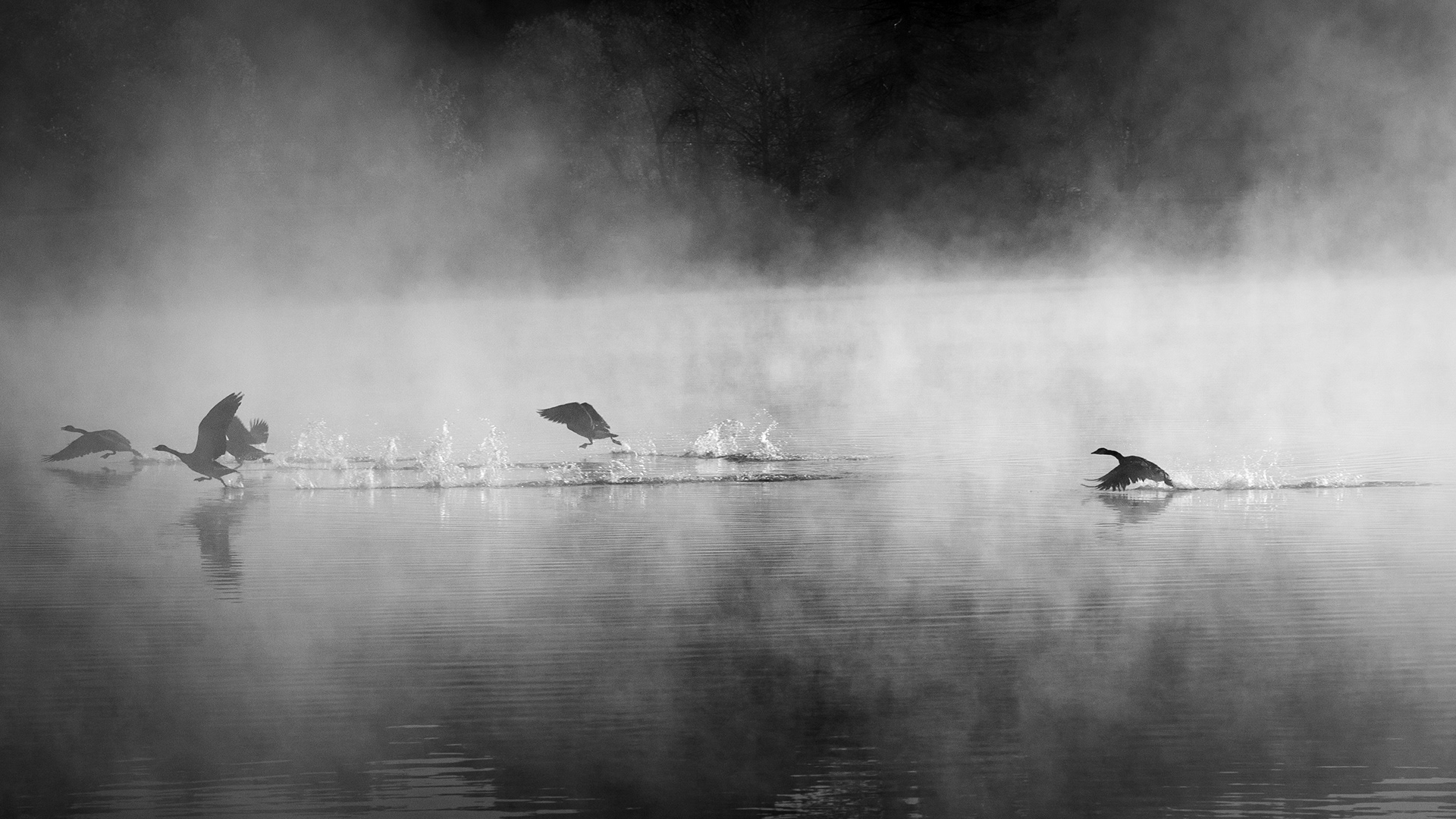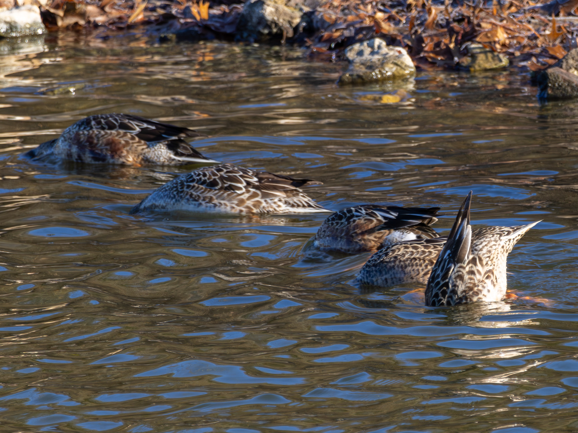 In the second photo, they are diving for food.