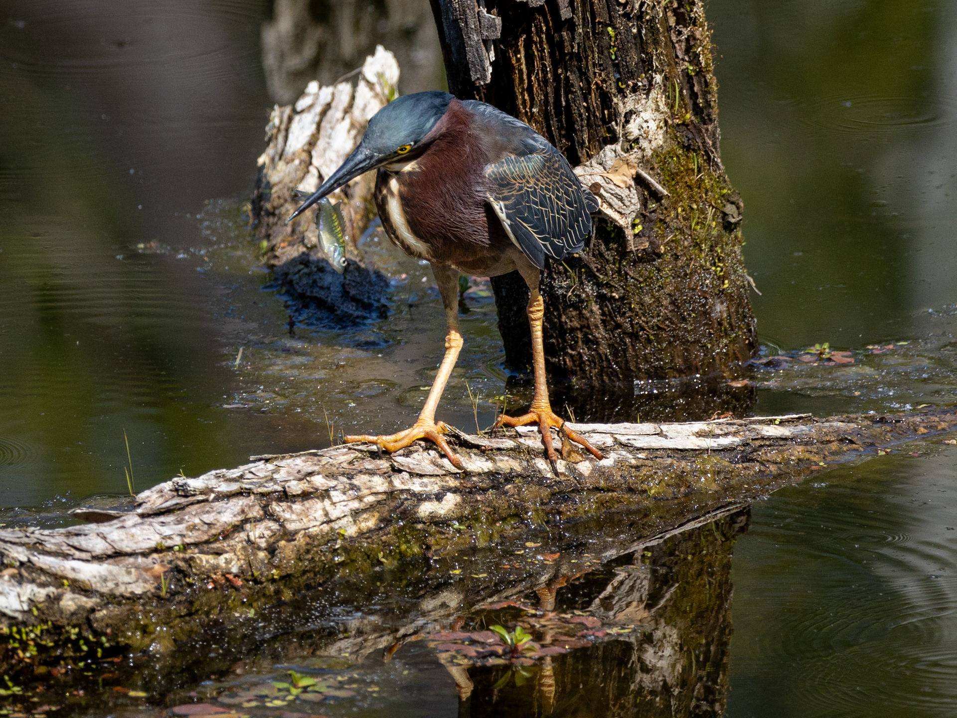GREEN HERON ABOUT TO STRIKE