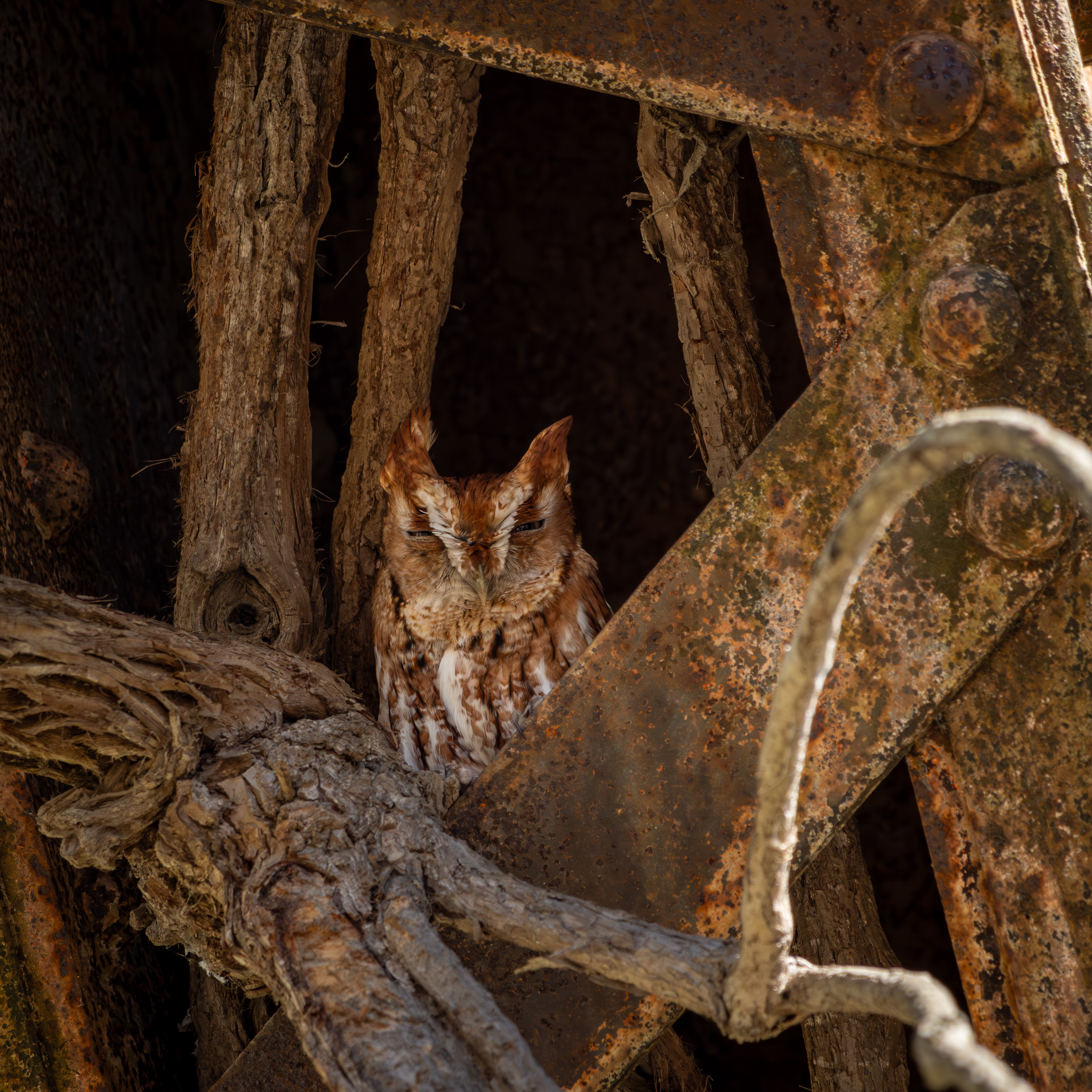 This cute little owl had built a nest in the underside of iron beams of the old railroad bridge over Perche Creek, which is now part of the MKT Trail in Boone County, Mo.
