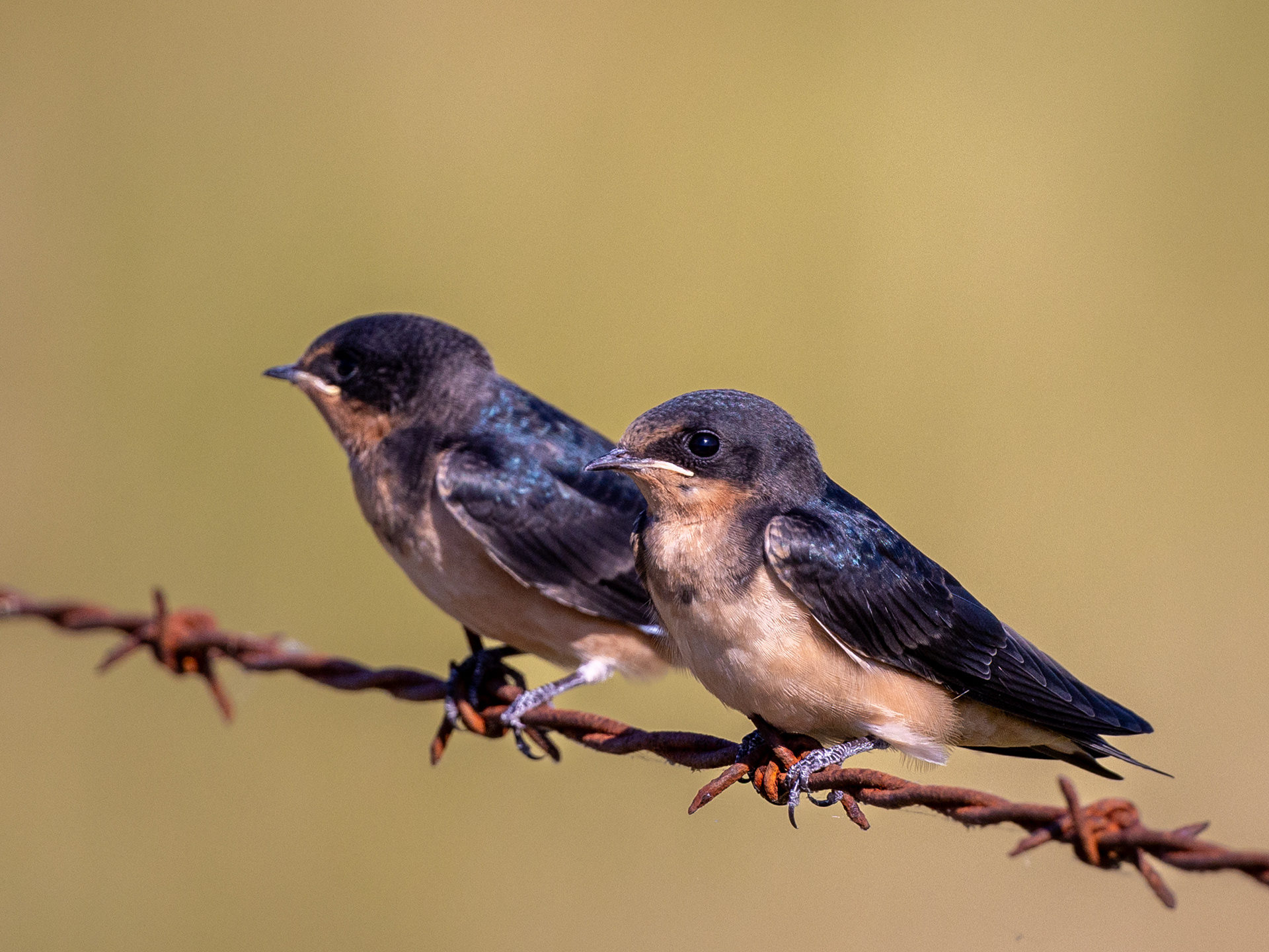 BARN SWALLOWS ON BARBED WIRE
