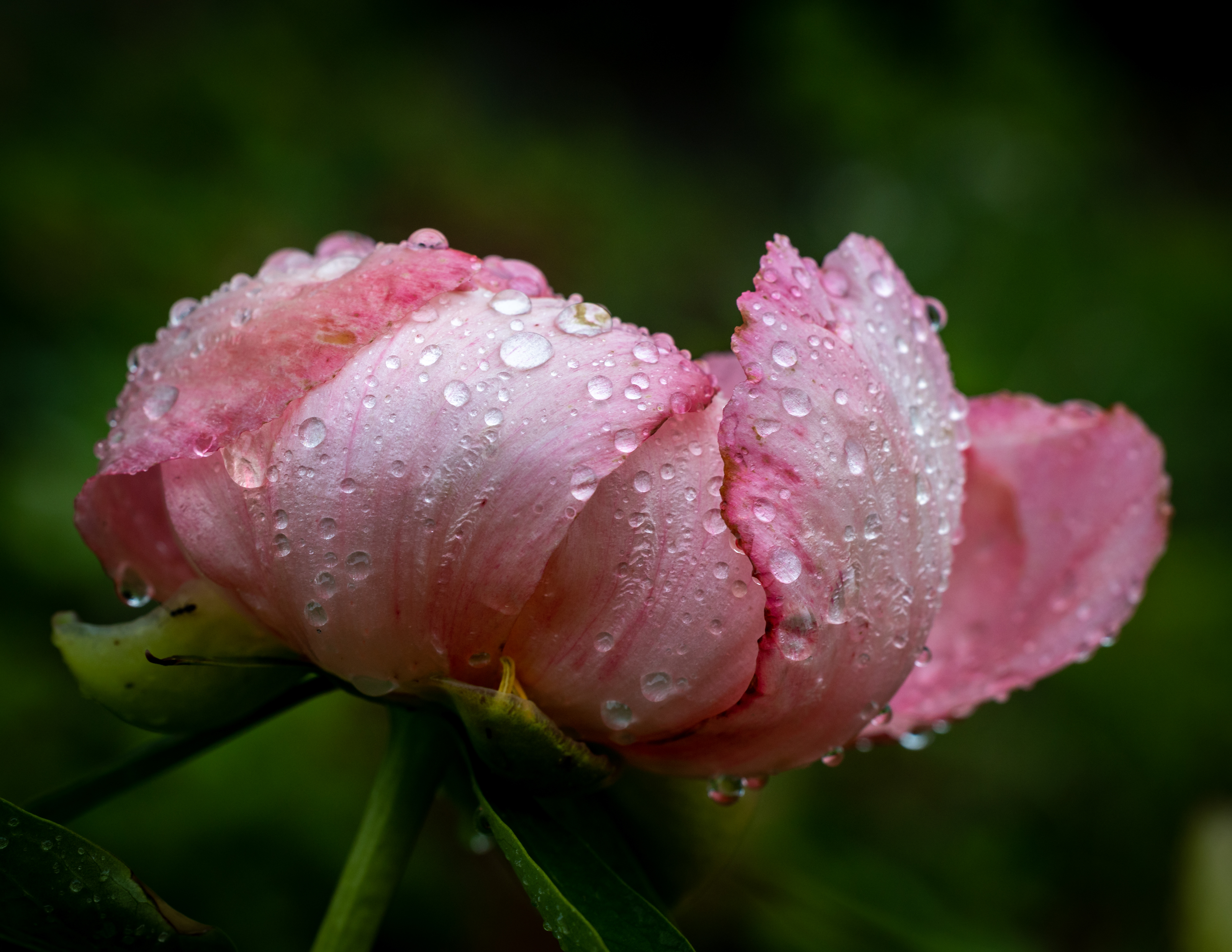 RAIN DROPS ON A PEONY BUD