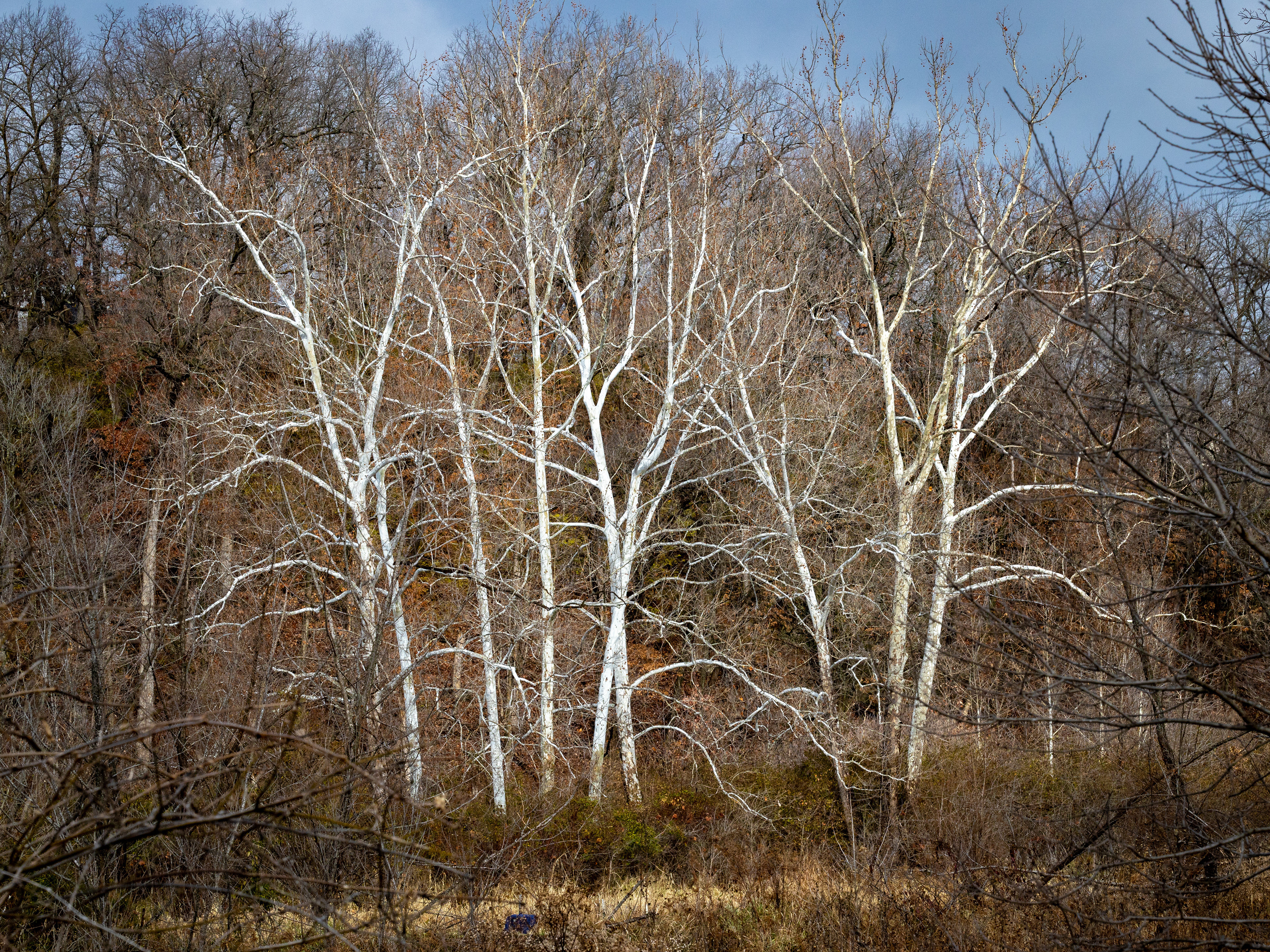 Especially in winter, the sycamores' white bark ensures they are the stars of the woods.